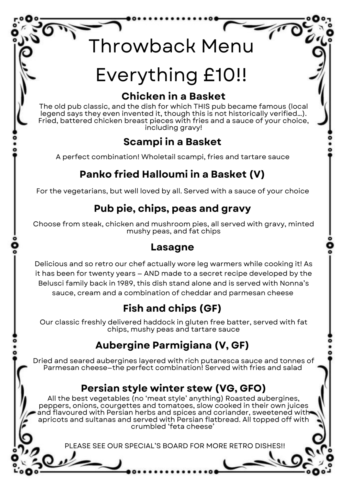 We believe that great pub food should be accessible to everyone, which is why throughout the entire month of January, every main course on our special Throwback Menu is just £10.